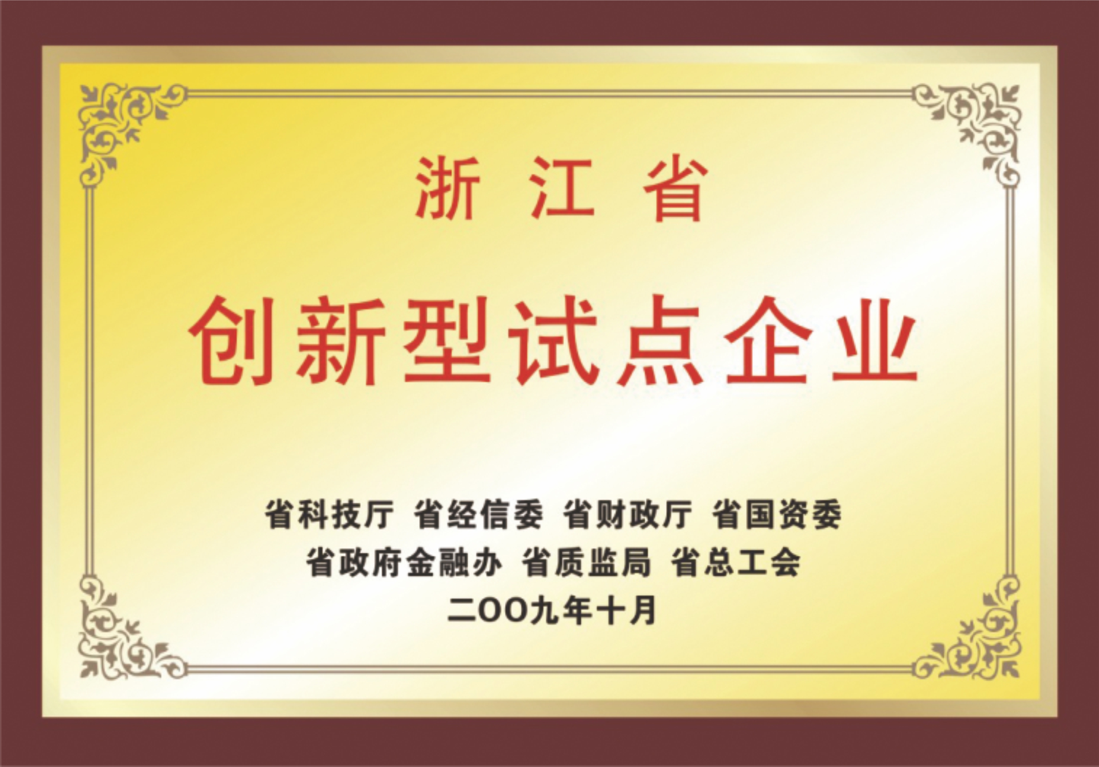 2009年浙江省創(chuàng)新型試點企業(yè)
