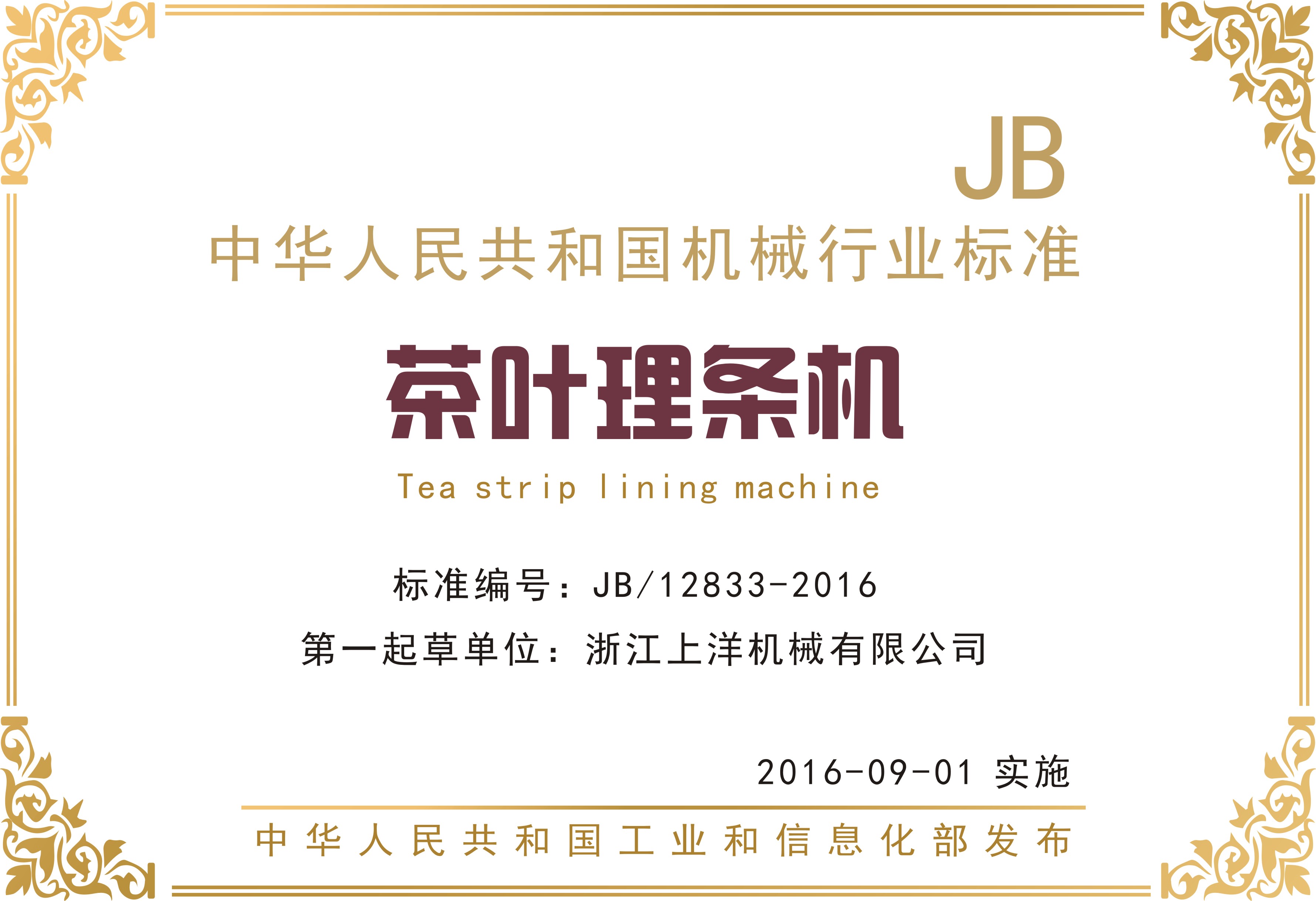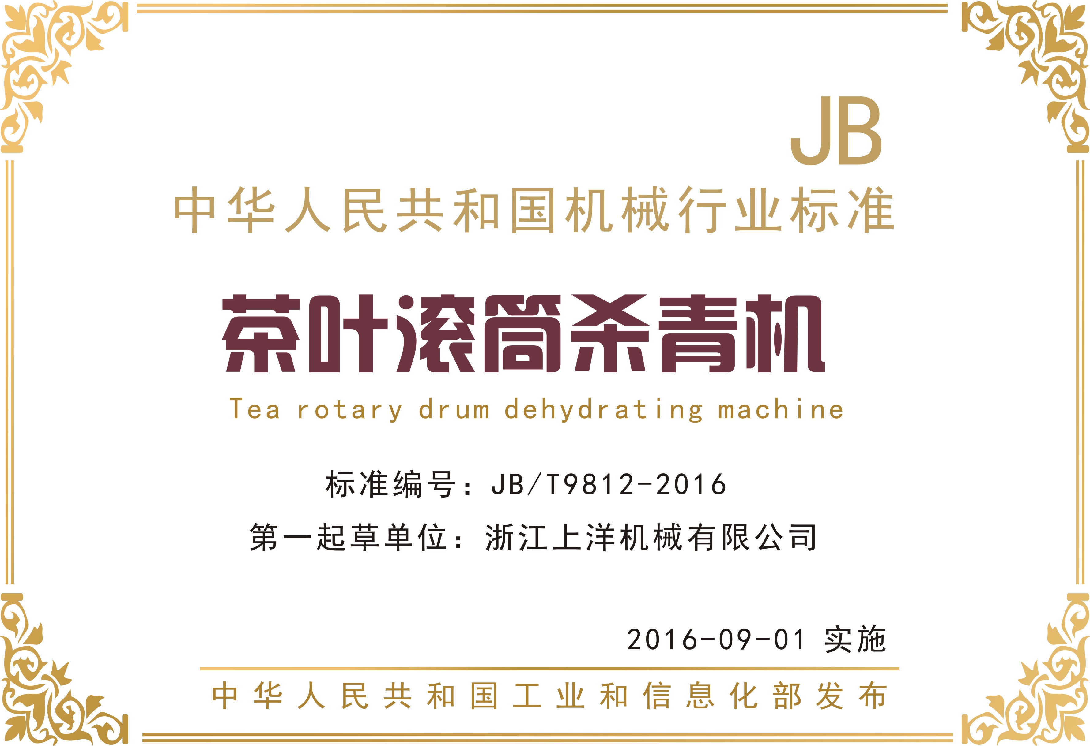 行業(yè)標(biāo)準(zhǔn)2、茶葉滾筒殺青機-第一起草單位