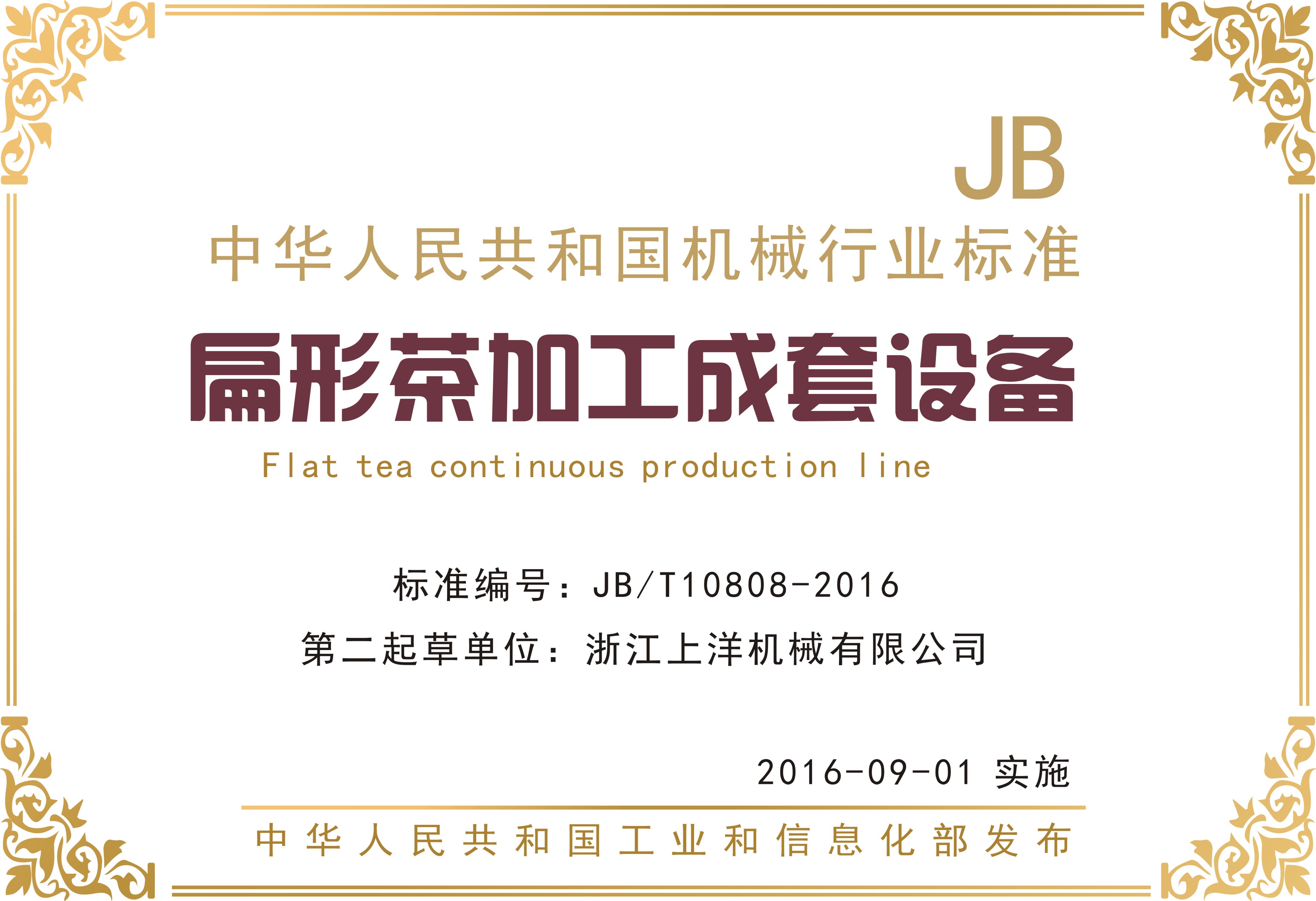 行業(yè)標(biāo)準(zhǔn)1、扁形茶葉加工成套設(shè)備-第二起草單位